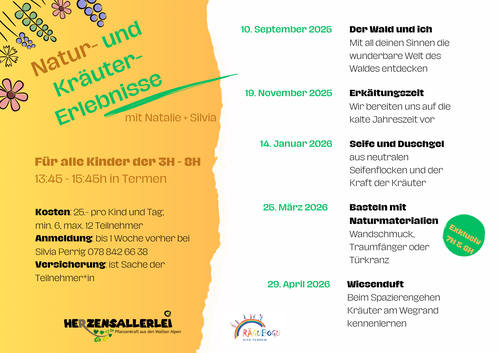 Im Zusammenarbeit mit Natalie und der Unterstützung der KiTa Rägubogu Termen biete ich dieses Jahr verschiedene Nachmittage für Kinder an. Alles dreht sich dabei natürlich um Kräuter